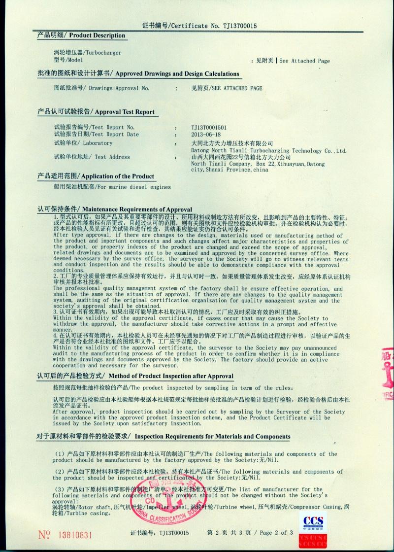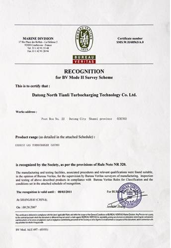 2. Certificate for Exhaust Gas Turbocharger by BV.