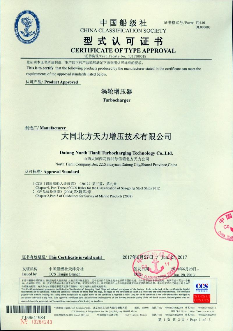 3. Certificate of Type Approval by CCS (China Classification Society).